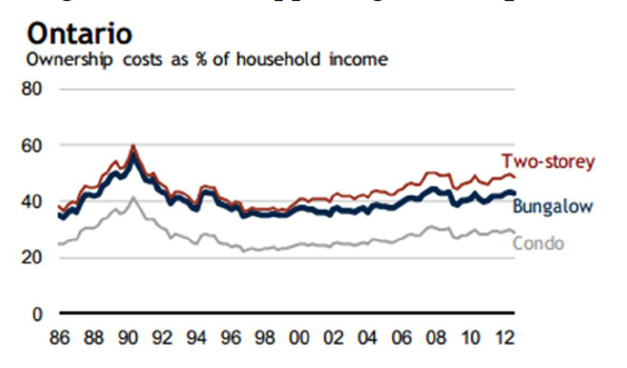 This is the affordability chart for Ontario as a whole. We can use it to look at high level trends, but at a provincial level this chart doesn’t give us much of the information we need.