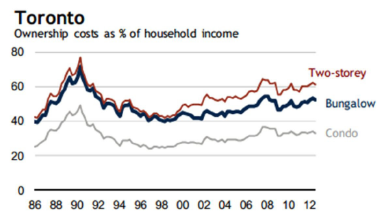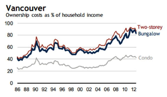 Compare this to a market like Vancouver where the percentage of average income it took to own a bungalow in the city reached 90%!